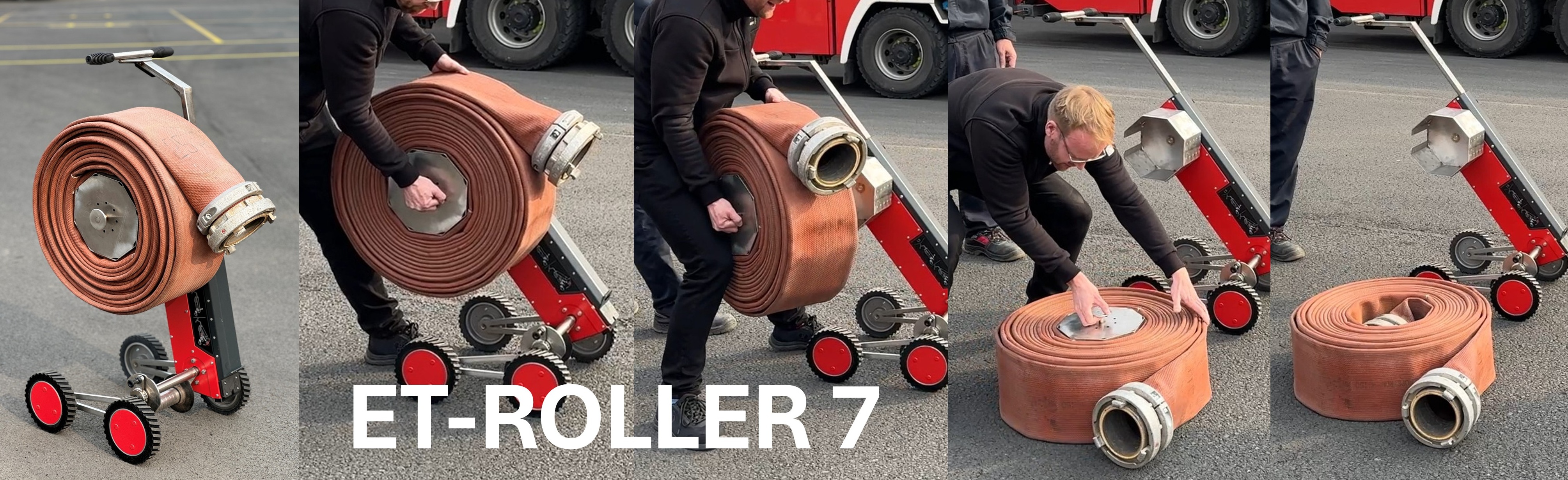 Elektrický navíječ požárních hadic ET-Roller 7 navine velké, těžké a dlouhé požární hadice s koncovkami do velikosti 6" - rychle, kvalitně a bez námahy zbytečné námahy zad a rukou.