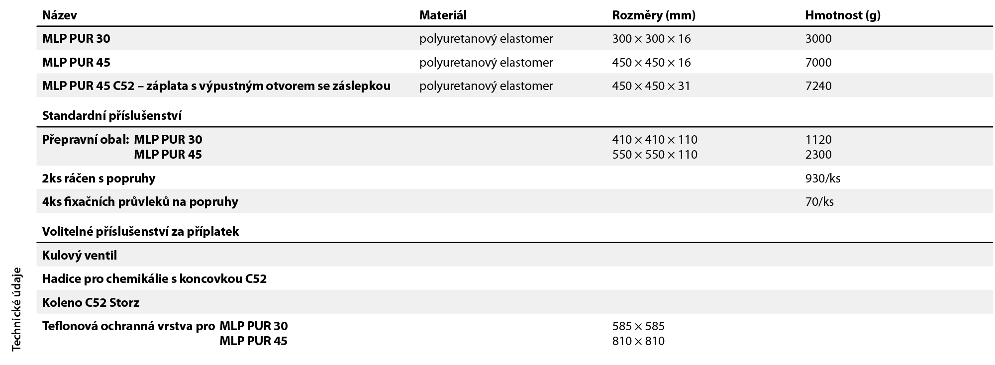 - Možnost použití teflonové ochranné vrstvy pro zvýšení chemické odolnosti záplaty