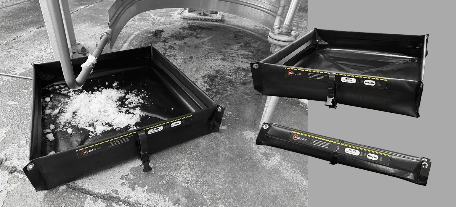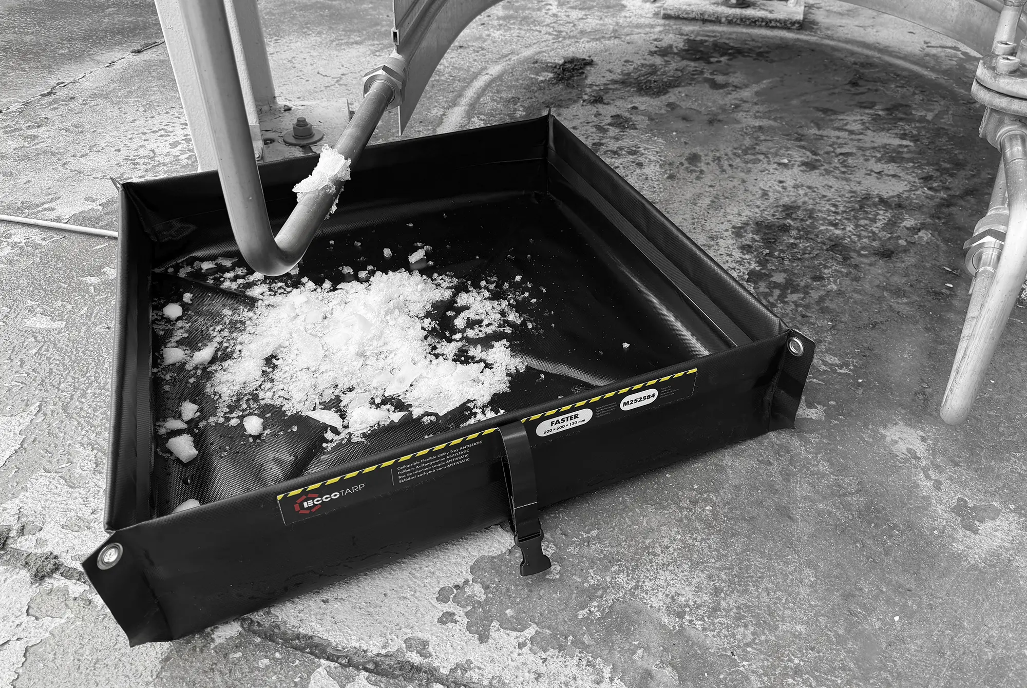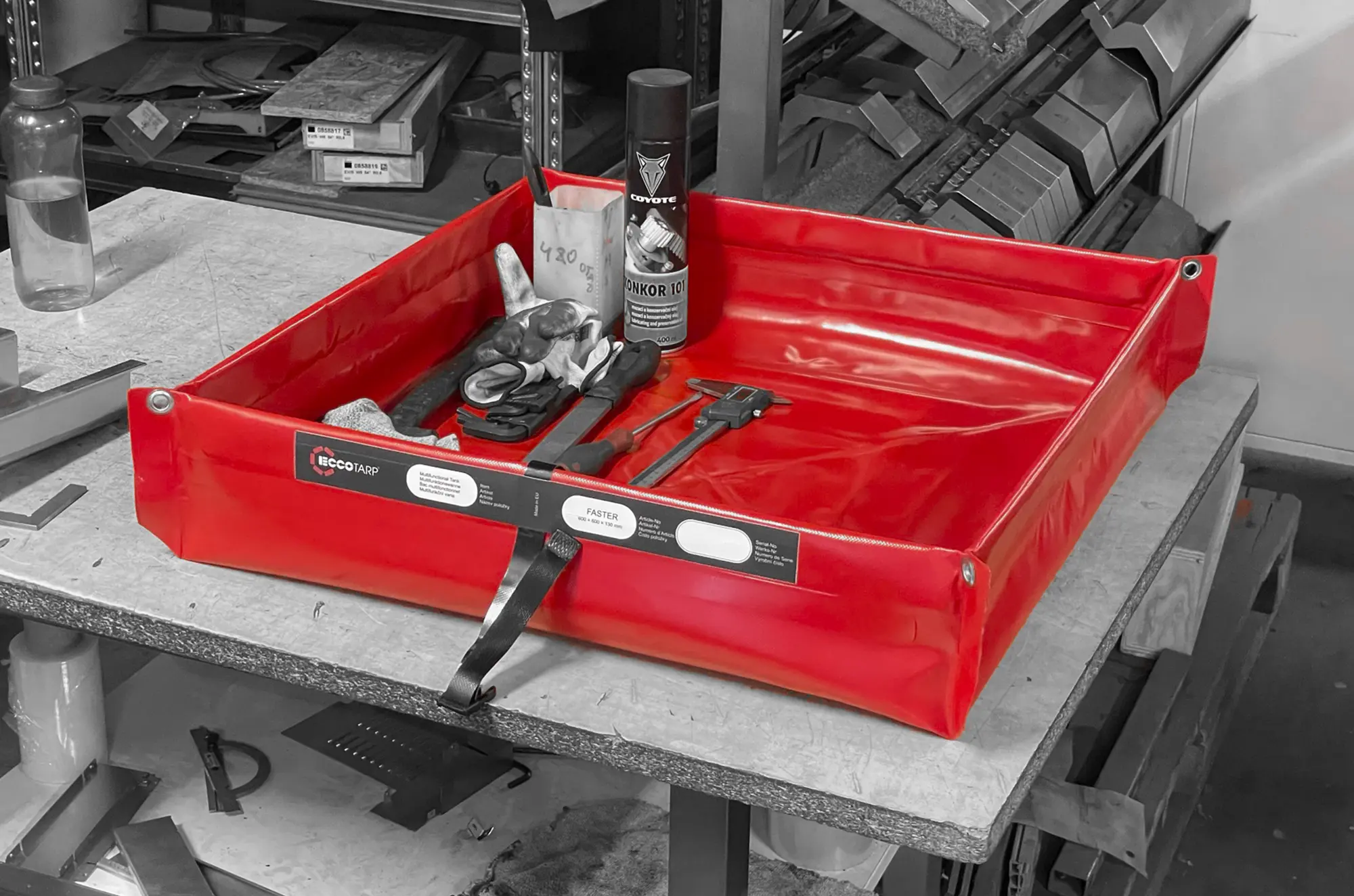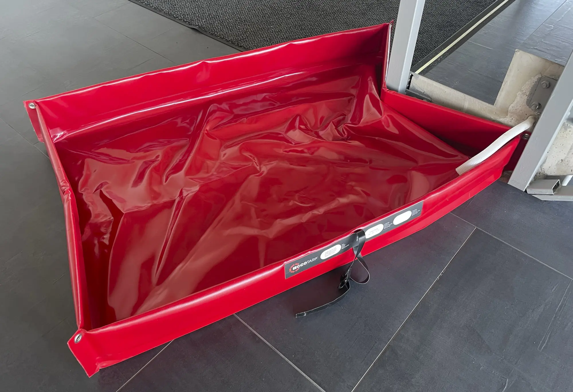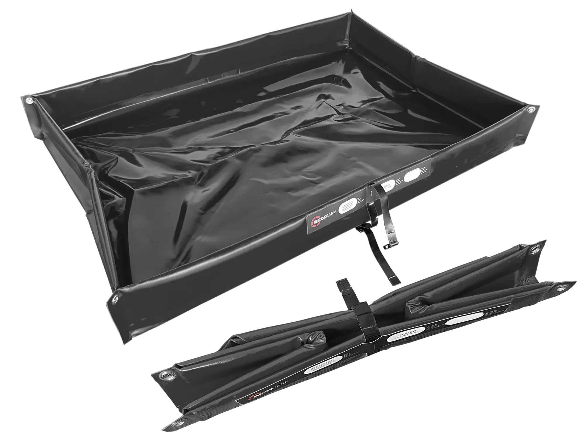 The tray with a uniquely designed roll-up folding structure is intended not only for the extremely fast capture of leaking dangerous liquids, but it is also suitable for short-term storage of canisters, barrels, contaminated parts, etc. The tray is made of special antistatic materials, making it suitable for use in environments with an increased risk of explosion.