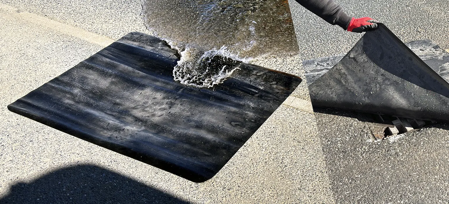The Drain cover is made of highly chemical-resistant nitrile rubber and is designed for rapid response in emergency situations involving hazardous liquid spills. It is not intended for permanent sealing of the incident site. The cover effectively prevents hazardous substances from entering the drainage system, thus significantly contributing to environmental protection.